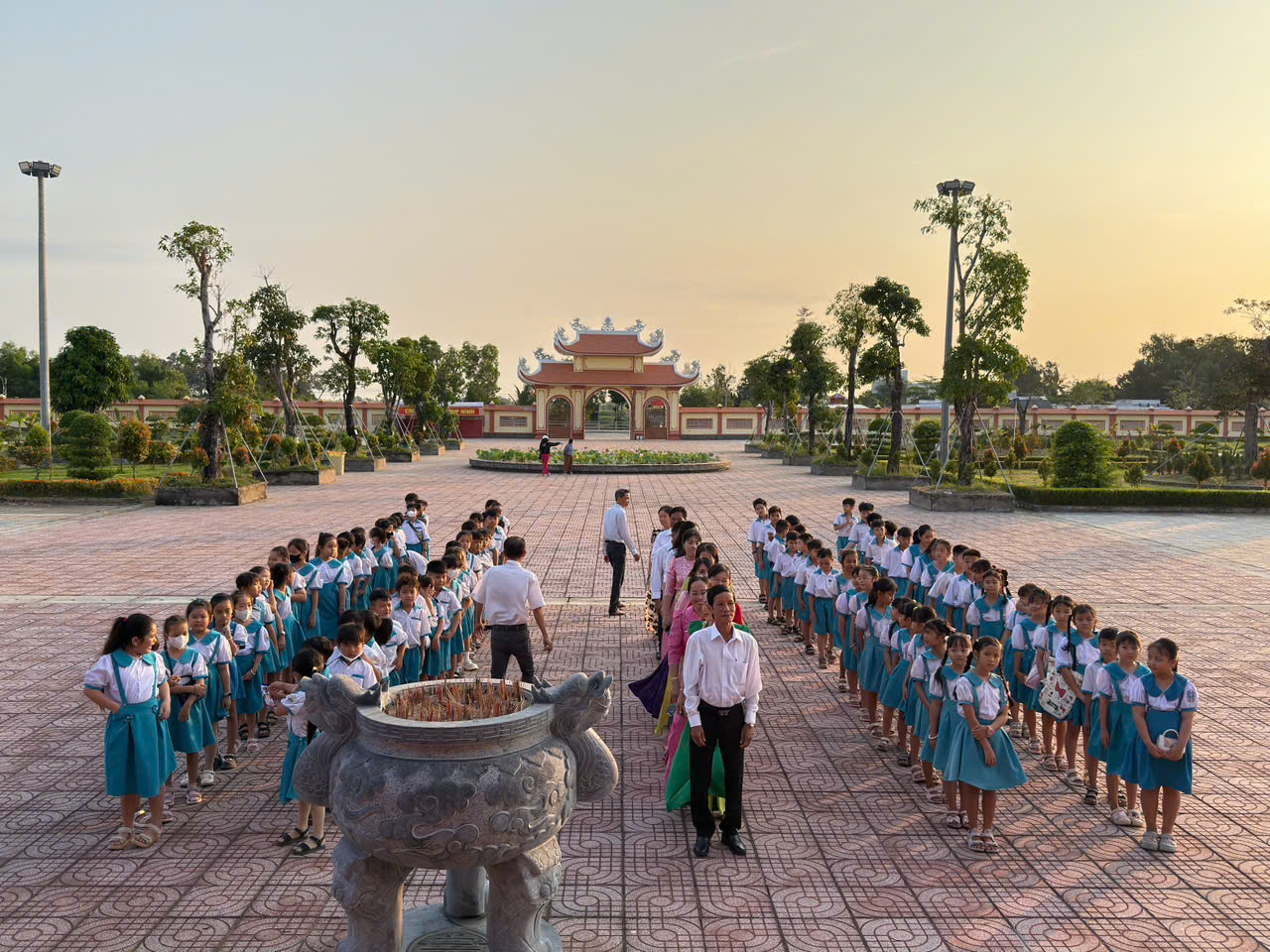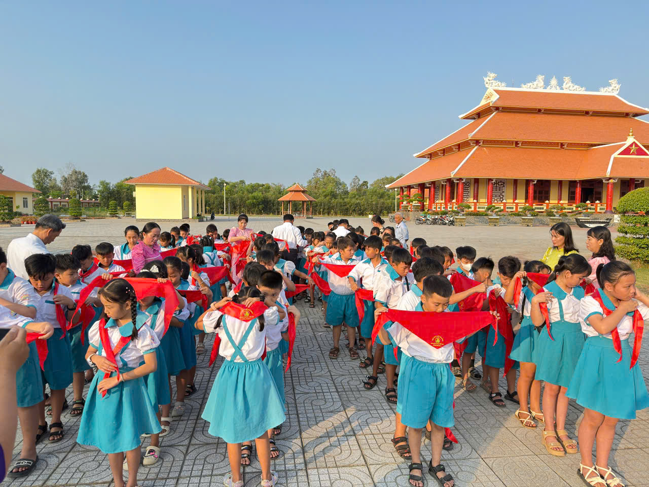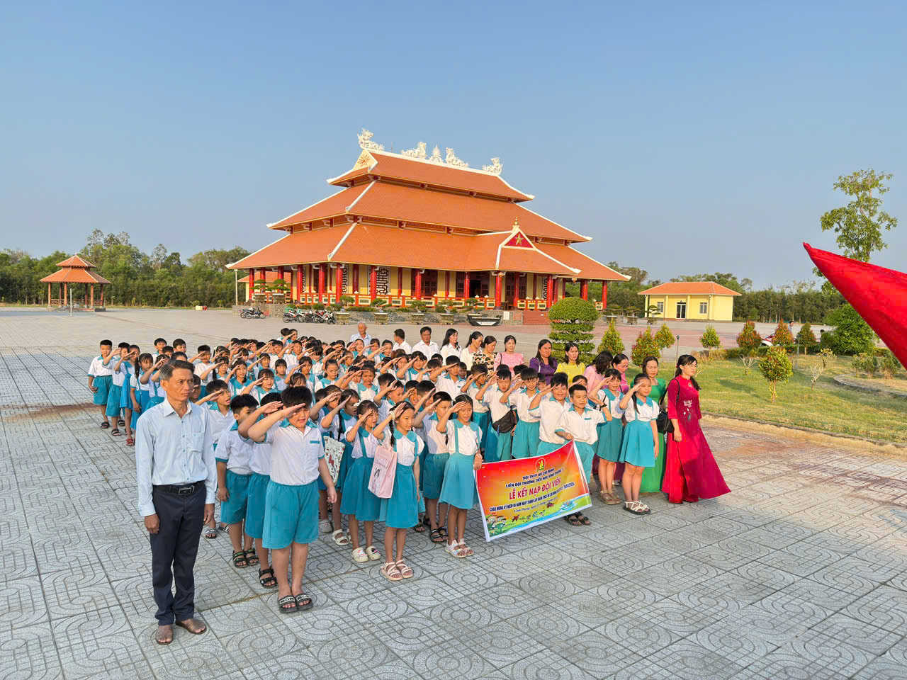 🌸 Tự hào mang trên vai chiếc khăn quàng đỏ: Đặc biệt hơn, trong không gian trang nghiêm của khu di tích, Liên đội đã tổ chức Lễ Kết nạp Đội viên mới cho các nhi đồng tiêu biểu. “Em hứa giữ gìn danh dự Đội…” – Lời hứa vang lên dõng dạc, đánh dấu bước trưởng thành của các em dưới sự dìu dắt của tổ chức Đội TNCS Hồ Chí Minh.
